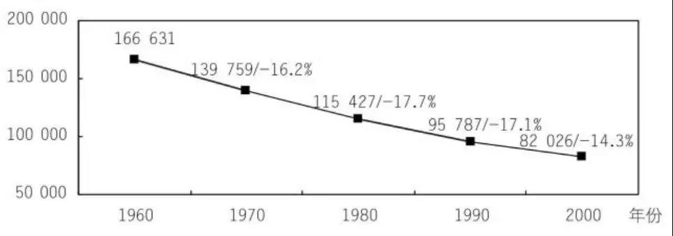 图为1960—2000年扬斯敦人口总数及人口增长率